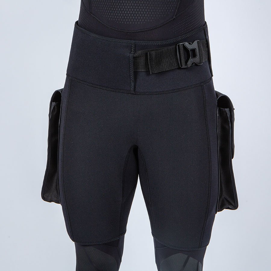 La cintura ancha, con cierre de perfil bajo y correa ajustable, permite un ajuste preciso y cómodo. Su interior incorpora un panel antideslizante que asegura que los shorts permanezcan en su sitio tanto durante la inmersión como en la caminata hacia el punto de entrada.